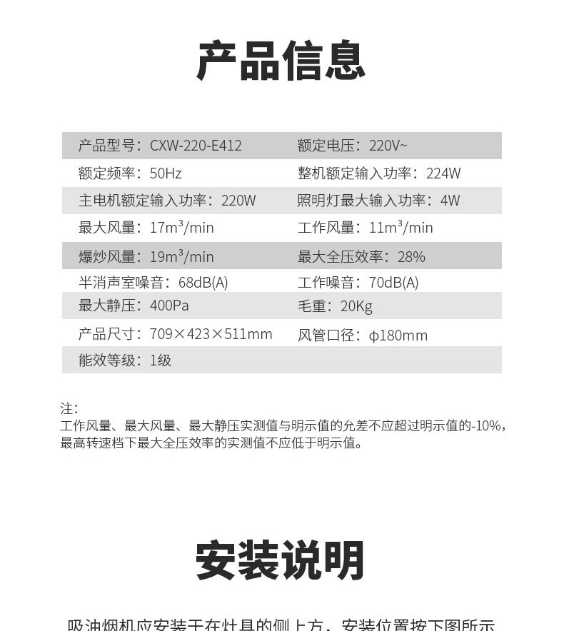 前鋒近吸式吸油煙機(jī)E412