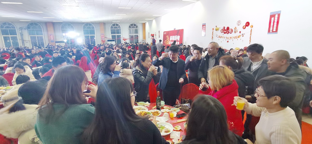 活動當(dāng)日正值2022年臘八節(jié),代表新年和圓滿的團(tuán)拜宴自然必不可少。下午6點(diǎn),在前鋒西區(qū)產(chǎn)業(yè)園食堂,舉辦了2022前鋒虎年團(tuán)圓家宴。所有參會領(lǐng)導(dǎo)、經(jīng)銷商代表及銷售團(tuán)隊參與了活動。