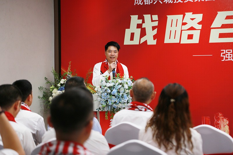 前鋒集團(tuán)董事長(zhǎng)楊鋼在儀式現(xiàn)場(chǎng)發(fā)表了致辭,他表示:“前鋒”作為深耕行業(yè)60余年的知名品牌,以締造城市、家庭、中國(guó)的美好未來為己任,從建設(shè)城市,到品質(zhì)生活,賦予宜居樂游的城市價(jià)值,是前鋒的企業(yè)使命,也是此次與興城集團(tuán)、成都蓉城足球俱樂部達(dá)成合作的契機(jī)。未來,我們將圍繞成都足球文化的打造、公園城市建設(shè)、成都文化精神和締造美好生活方面,為成都更出彩貢獻(xiàn)力量!