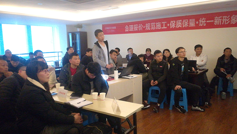 為期兩天的培訓(xùn)會本著提高“前鋒”品牌店面裝飾裝修工程水平,全民提升施工時效,呈現(xiàn)工程質(zhì)量,以及“合理報價,規(guī)范施工,保質(zhì)保量,統(tǒng)一新形象”的主題為參會的二十家公司人員展開統(tǒng)一培訓(xùn)。