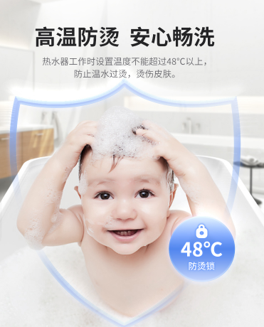 斷電再啟,溫度依舊;48℃防燙鎖,確保老人和小孩安全暢洗;四重呵護(hù),保障全家遠(yuǎn)離細(xì)菌,享受健康舒適的熱水生活。