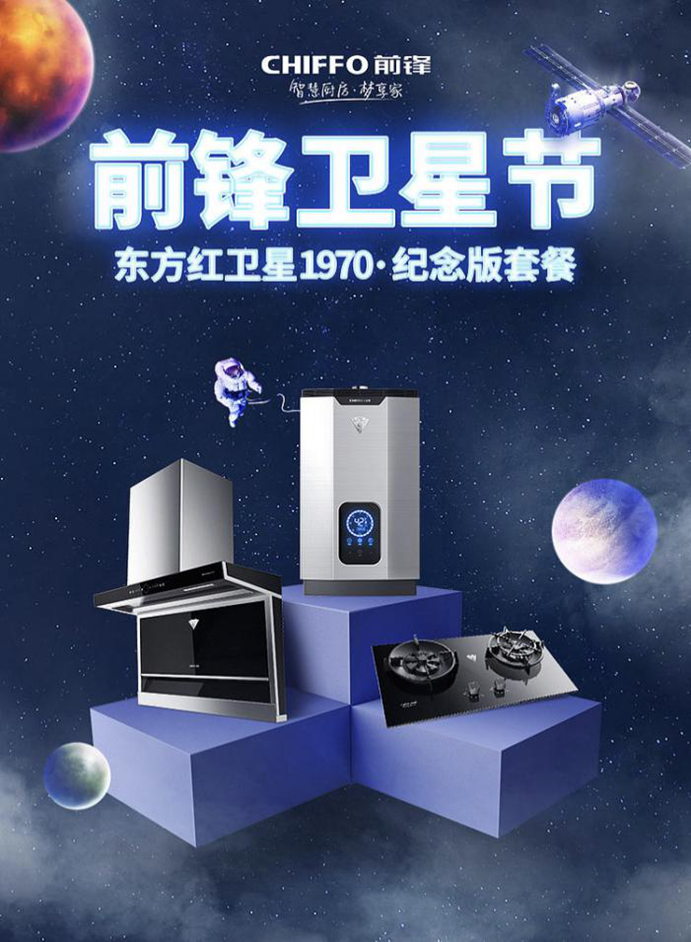 如今,距“東方紅一號”發(fā)射成功整整50年,半個世紀的風雨兼程,半個世紀的砥礪前行,我國的航天事業(yè)飛速發(fā)展,世界矚目。為紀念我國第一顆人造地球衛(wèi)星發(fā)射成功,前鋒推出了“東方紅1970典藏版套餐”和“東方紅1970紀念版套餐”兩款定制版套餐,兩款套餐分別匯聚了前鋒廚電目前最具優(yōu)勢和最具人氣的零冷水熱水器、平板雙吸油煙機以及嵌入式灶具。從外觀上,每款產品都擁有專屬定制標貼,彰顯其獨特身份;產品性能上,這兩款新品套餐均為高端類產品,延續(xù)經典的同時又搭載了全新的科技,讓用戶在使用過程中充分感受前鋒廚電的品質與科技魅力。